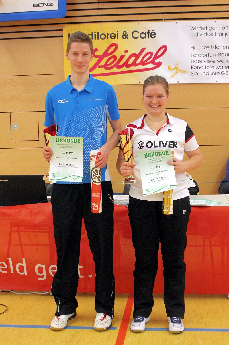 Sieg im Mädcheneinzel u13 durch Joleen Pfeiffer und im Jungendoppel u13 durch Nils Hahn/Konrad Rötzer