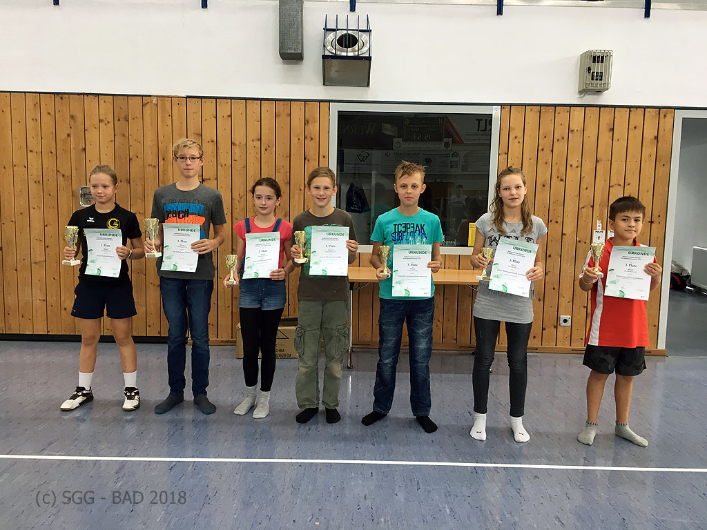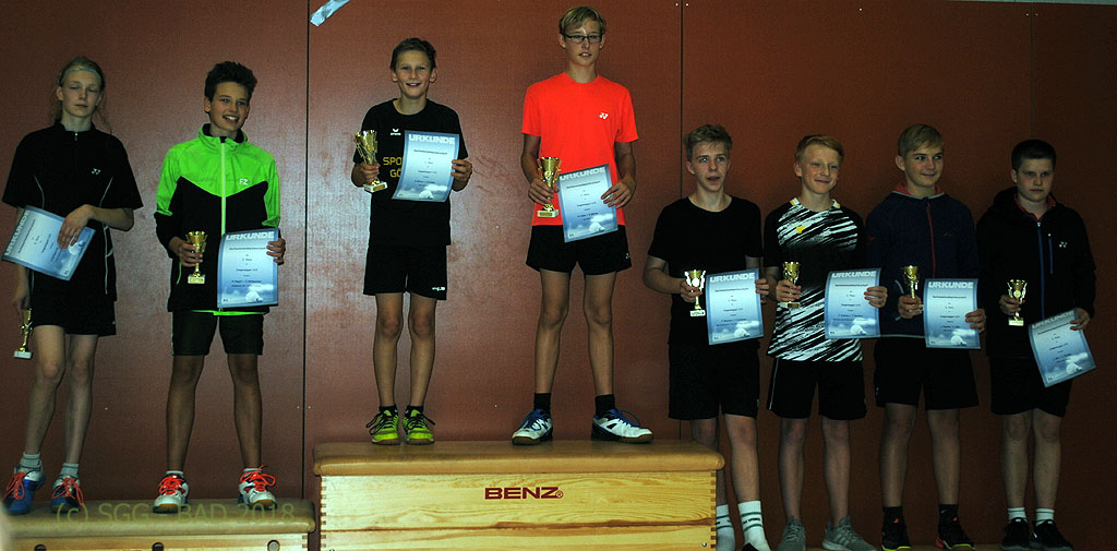 Sehr erfolgreich verlief die Regionalmeisterschaft der Altersklassen u13 und u17 für die SG Gittersee. Trotz des krankheitsbedingten Ausfalls von Joleen Pfeiffer in u13 standen die Gitterseer Nachwuchsspieler in 9 von 10 Disziplinen auf dem Treppchen. Im Jungendoppel u13 waren alle 7 Gitterseer Jungs auf dem Treppchen zu finden. Das Treppchen im Jungeneinzel u13 war komplett in schwarz-gelb gehüllt. Zwei große Überraschungen gelangen unseren u15 Mädels Ros Riedel und Friederike Estel.