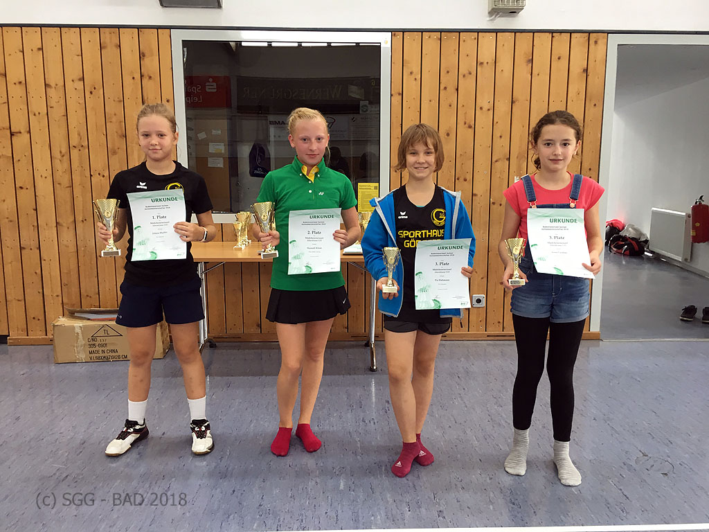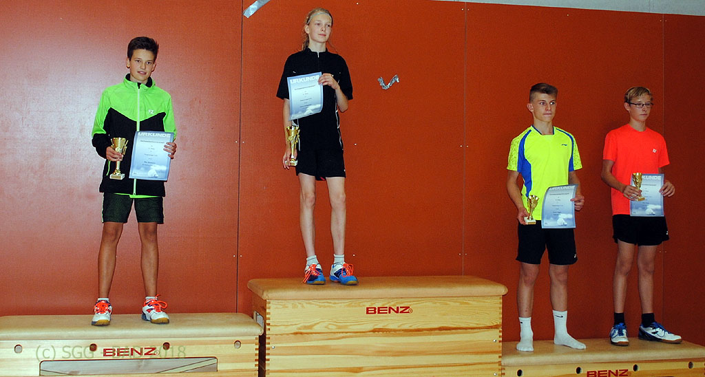 3,5 Titel gehen an den Nachwuchs der SG Gittersee, Amelie Lehmann und Pheline Krüger mit je zwei Titeln, u13 Doppel Nils Hahn/Konrad Rötzer holt überraschend den Titel im Jungendoppel, u13 Mixed Nils Hahn/Joleen Pfeiffer wird Vizemeister