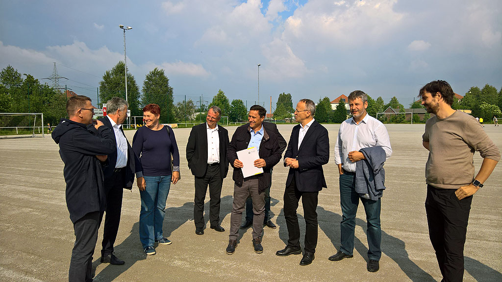 Der Dresdner Sportbürgermeister Peter Lames überreichte letzten Mittwoch (16.05.2018) einen Fördermittelbescheid der Landeshauptstadt (166.770,00 EUR) für den Bau eines Kleinfeldkunstrasenplatzes auf unserem Vereinsgelände.