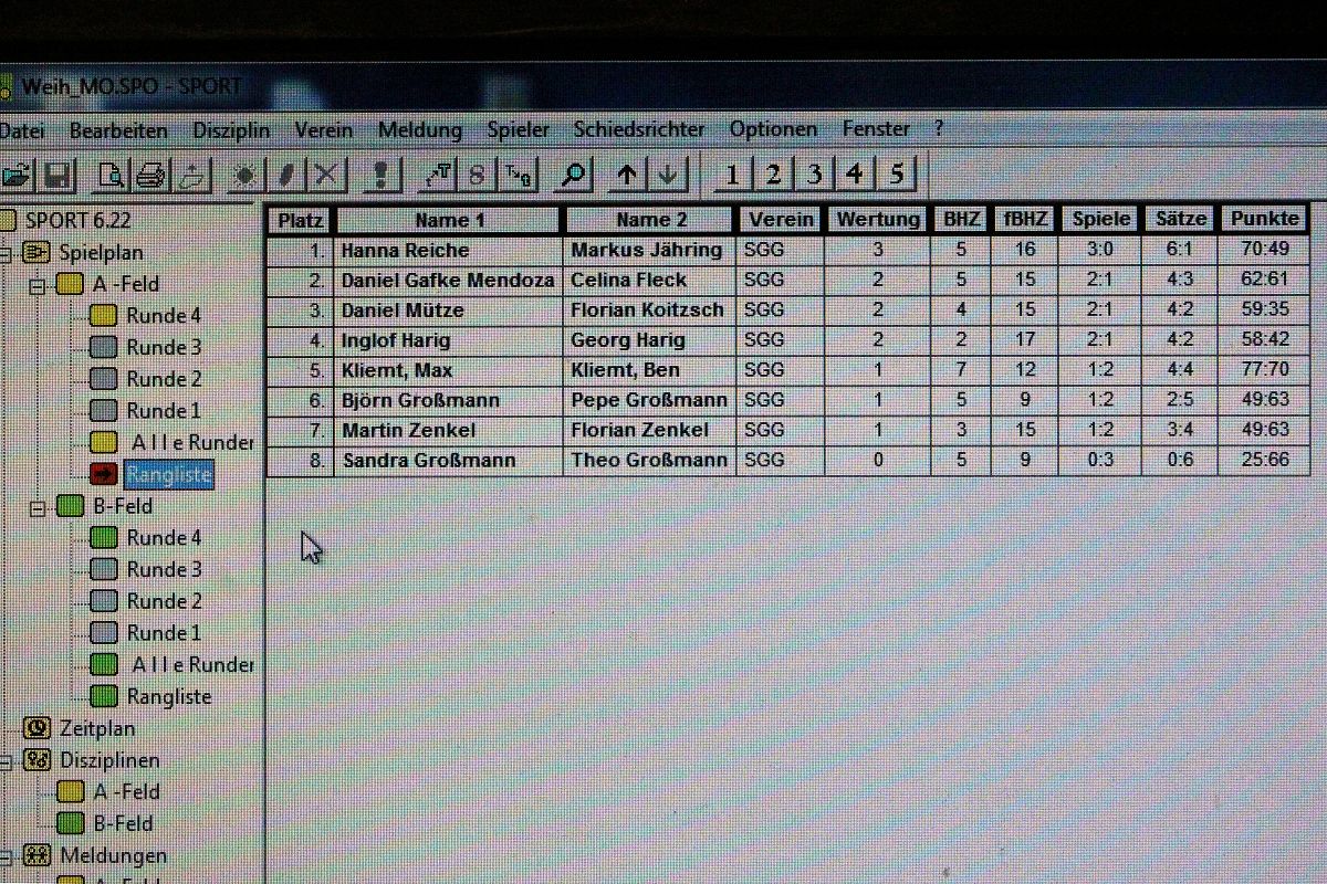 Pünktlich 09:00 Uhr begannen die Vorrundenspiele. Stellan, Paula und ich hatte eine 4er Gruppe und Huertus eine 5er Gruppe. Ich konnte in meiner Vorrunde den 2. Platz erreichen. Mein Spiel um den Einzug ins Viertelfinale gegen Sophia Lehmann ging dann leider verloren.