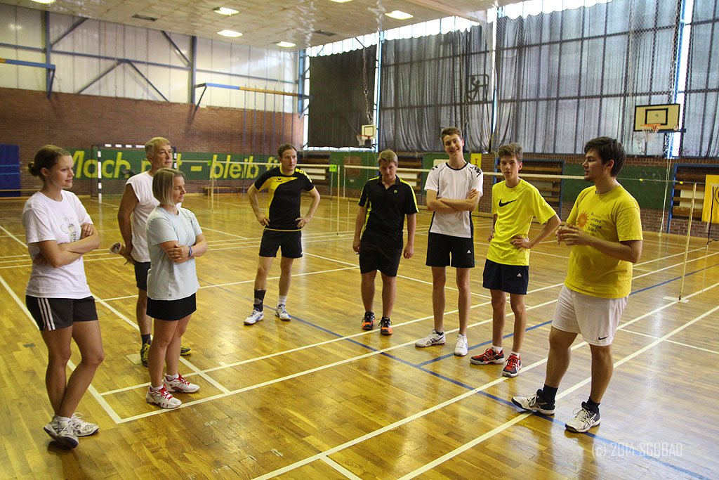 Herrliches Sommerwetter an einem Wochenende in der Augustmitte 2014: für die Mehrheit der Bundesbevölkerung Zeit für ein Stelldichein am lokalen Badegewässer. Für die erste Badmintonmannschaft der SG Gittersee ist es die Saisonvorbereitungszeit. Zu diesem Zweck versammelte sich am vergangenen Freitag ein Großteil dieser Mannschaft in seiner Heimspielstätte zum Trainingslager. Neben den Organisatoren Anne und Tom boten Maria, Lisa, Lutz, Oli, Martin und Ronny sowie der Gittersee-Veteran Alois den Qualen die Stirn unter dem Motto: Keine Gnade für die Wade.