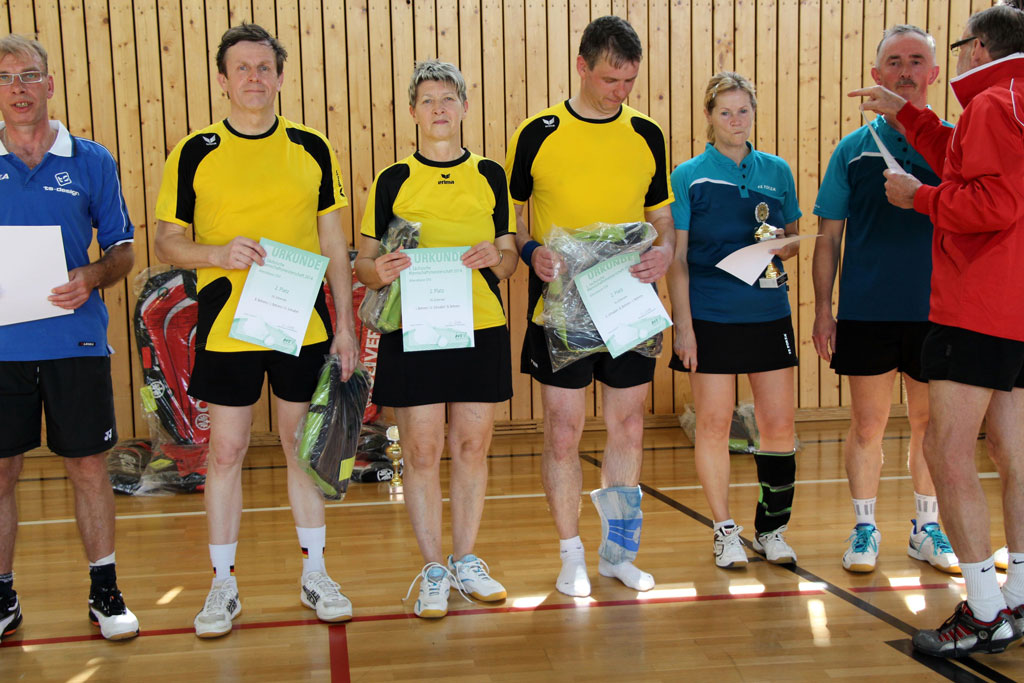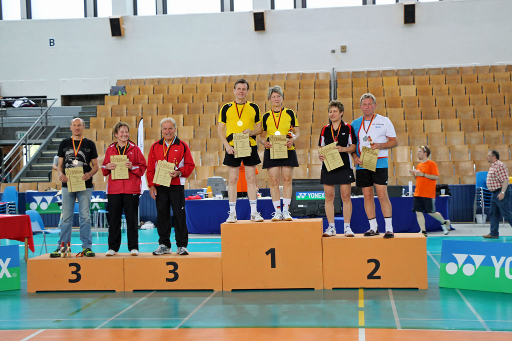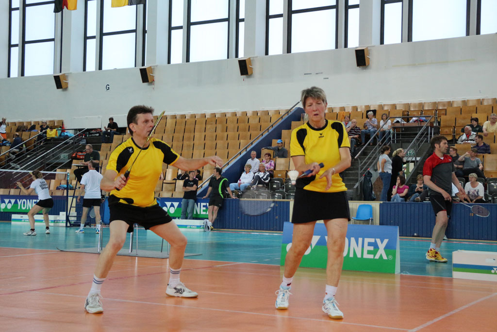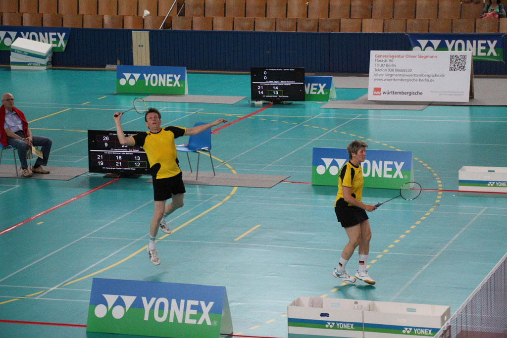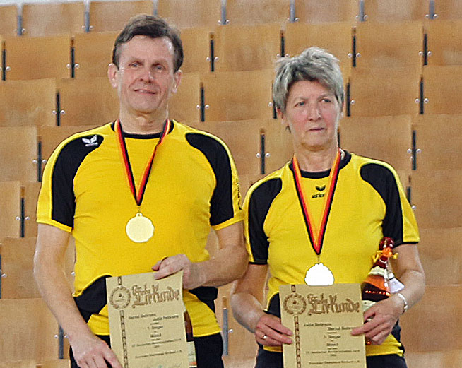 Bernd und Jutta Behrens waren als Titelverteidiger im Mixed „topgesetzt“ und konnten den hohen Erwartungen vollauf gerecht werden: nach Freilos und relativ klaren 2-Satz-Erfolgen in den nächsten beiden Runden konnten sie sich im Halbfinale nach einem mit 16:21 verlorengegangenen ersten Satz noch mit 21:16 und 21:15 behaupten und waren auch in einem hart umkämpften Finale erfolgreich (21:19, 18:21, 21:15). Nach 1989, 2006 und 2013 war es ihr vierter gemeinsamer Titel bei „Deutschen“ Meisterschaften!!