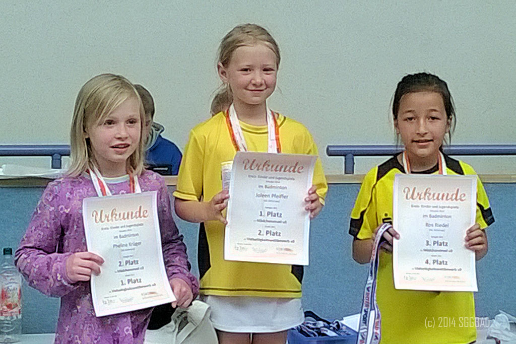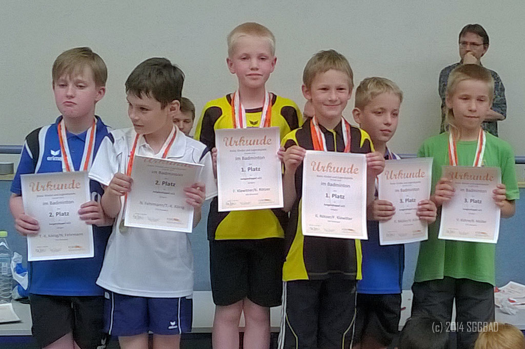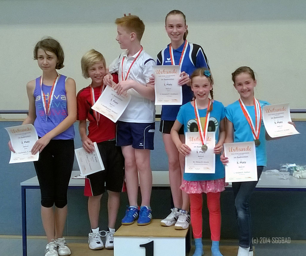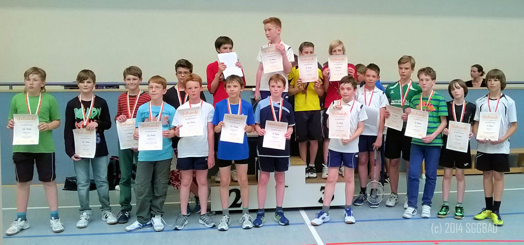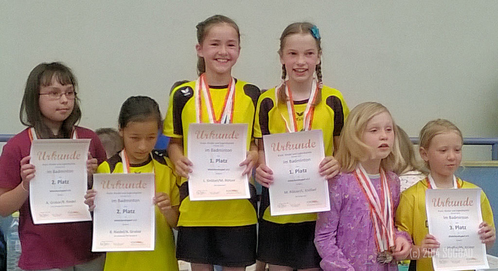 Am Wochenende fanden die Kreis-Kinder-Jugendspiele bei Motor Mickten statt. Am Samstag (21.06.2014) traten von der SG Gittersee 15 Kinder in den Altersklassen u9 bis u13 an. Gespielt wurde dabei Einzel und ein Vielseitigkeitsturnier in der u9. Einzel und Doppel in der u11 und Einzel, Doppel und Mix in der u13. Insgesamt nahmen mehr als 50 Kinder teil, weswegen die letzten auch erst kurz vor 19 Uhr die Halle verlassen haben. Hervorzuheben ist das wir in der u9 bei den Jungs und Mädels jeweils die ersten drei Plätze belegt haben. Auch für unsere u11er gab es für jeden unserer Starter mindesten ein Treppchenplatz und auch die u13er waren erfolgreich.