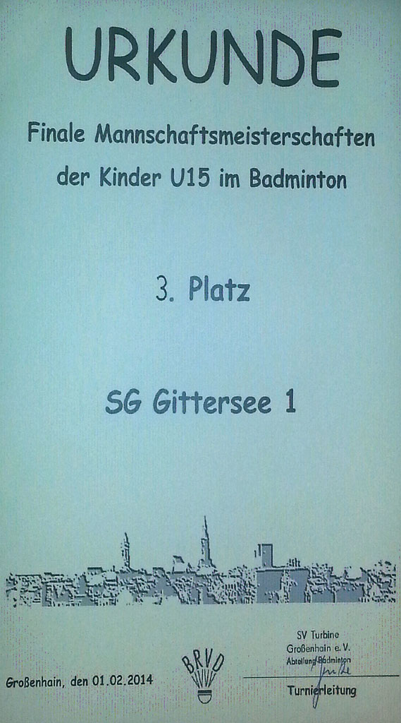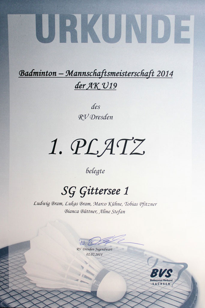 Am 19.01.2014 fand die zweite Begegnung des 1. Punktspielwochenendes im neuen Jahr in der Sporthalle der 70. GS statt. Um 10 startete die Partie der 1. Mannschaft der SG Gittersee gegen die weitgereiste 1. Mannschaft des TV 1884 Marktheidenfeld, die zweite bayrische Mannschaft der Regionalliga Südost Ost. Begonnen wurde mit dem Damendoppel und dem 1. Herrendoppel. Bei den Damen konnten Maria Kühne und Franziska Todt einen klaren Punkt gegen die Gäste Amelie Specht und Eva Redelbach mit 21:9 und 21:15 sichern.