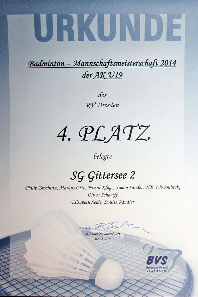Für die am 02.02.2014 bei Motor Mickten im Einfach‐K.‐o. ausgetragenen Finalrunde um die Mannschaftsmeisterschaft hatten sich beide Gitterseer Jugendmannschaften qualifiziert.