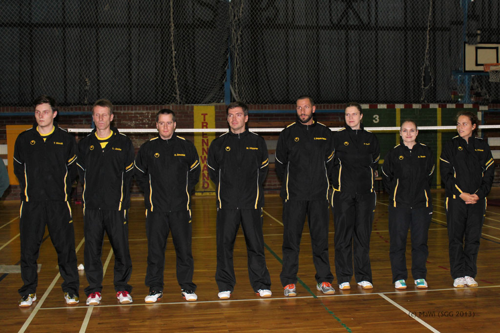 Für die erste Mannschaft der SGG um Kapitän Tom Wendt stand am letzten Wochenende der Regionalliga-Hinrunde endlich das erste Heimspiel im Spielplan. Auch aus weiteren Blickwinkeln ein ganz besonderes Wochenende. Es war Derby-Zeit! Dabei kann Derby nicht nur im geografischen Sinne verstanden werden, weil als Gäste die beiden ersten Vertretungen des Stadtrivalen TSV Dresden angekündigt waren. Die drei Mannschaften waren darüber hinaus auch unmittelbare Tabellennachbarn. Des Weiteren sollte die SGG I erstmals in dieser Saison vollständig auflaufen können. Sowohl die topgemeldeten Damen (Anna Bram, Maria Kühne und Franziska Todt) als auch die ersten fünf Herren (Tom Wendt, Oliver Zoschke, Lutz Jenke, Emanuel Delgado-Valdes und Martin Höppner) waren am Start. Es hingen mithin greifbare Punkte in der Luft.