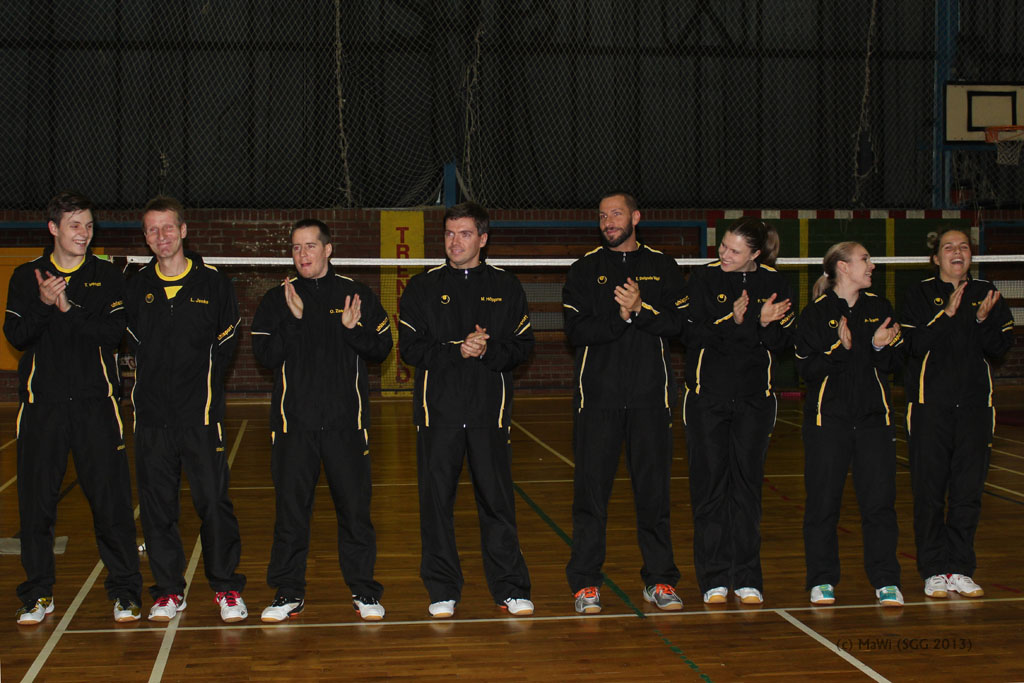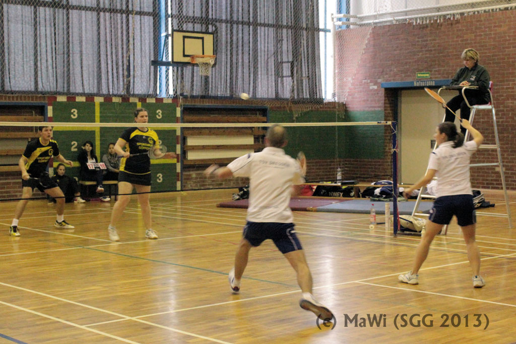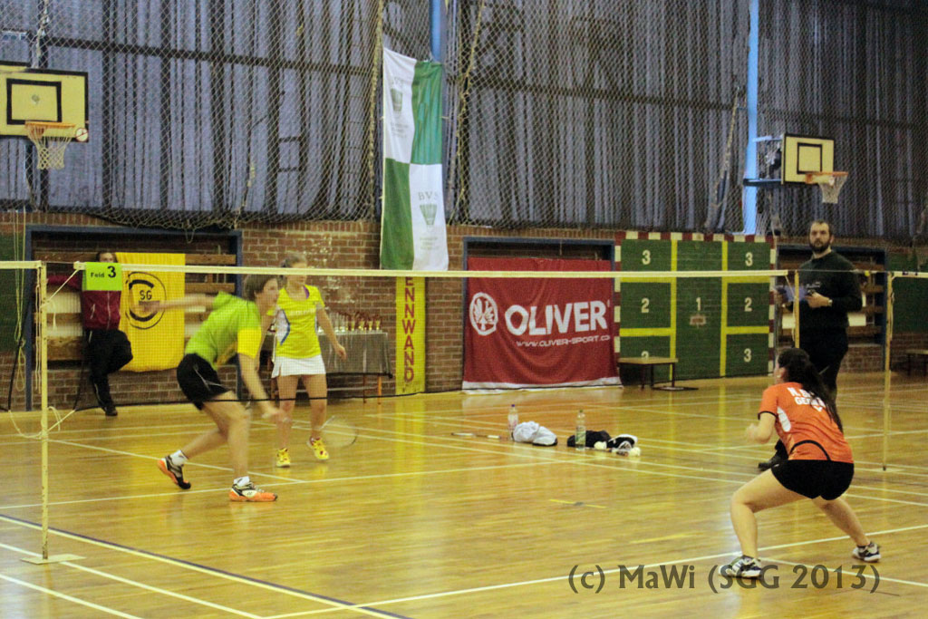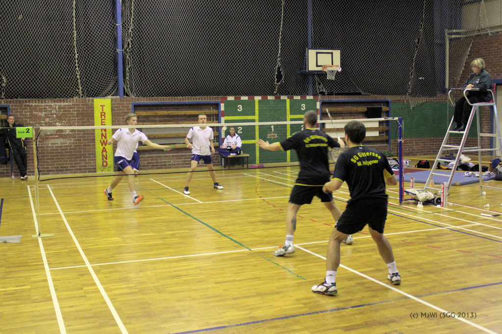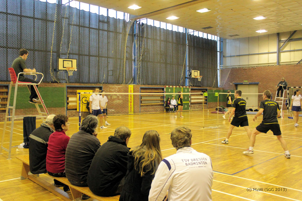 Am 27.10. 2013 um 10:00 startete das Punktspiel der 1. Mannschaft der SG Gittersee gegen die 1. Mannschaft des DhfK Leipzig. Im 1.  Herrendoppel konnten Tom Wendt und Martin Höppner den ersten Satz gegen Stefan Wagner und Oliver Strick für sich entscheiden. Leider drehte sich das Spiel nach dem zweiten Satz. Das Endergebnis lautete 18:21, 21:14 und 21:14 für die Gegner. Auch das Damendoppel entscheidete die DhfK mit Lisa Baumgärtner und Jenny Bayger mit 21:19 und 21:9 für sich. Vor allem im zweiten Satz sahen die Mädels, Franziska Todt und Maria Kühne, nicht so gut aus.