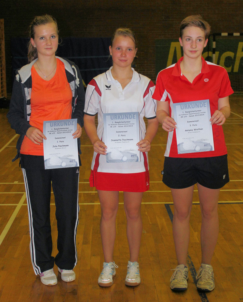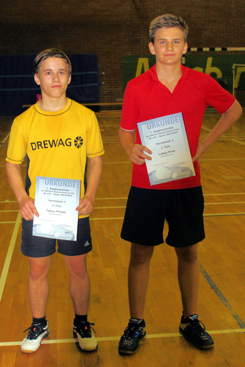 Sieger und Platzierte beim 1. Ranglistenturnier des Badminton‐Regionalverbands Dresden AK u19 – Saison 2013/2014 am 13. Oktober 2013 bei der SG Gittersee e.V.