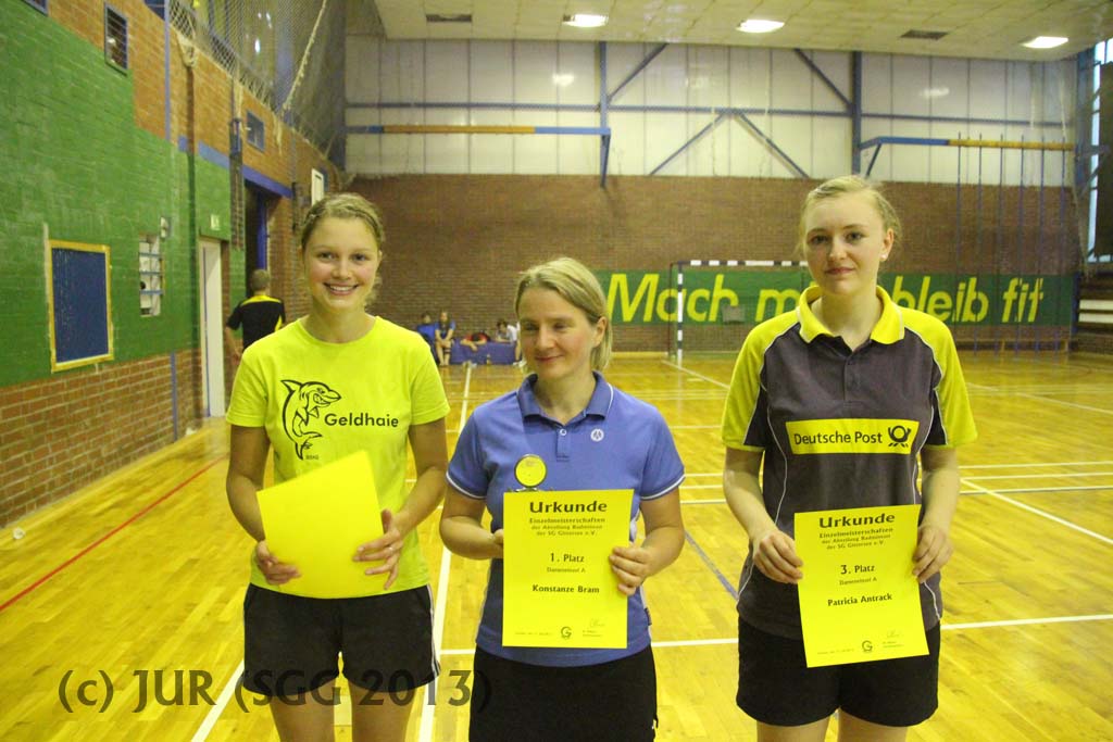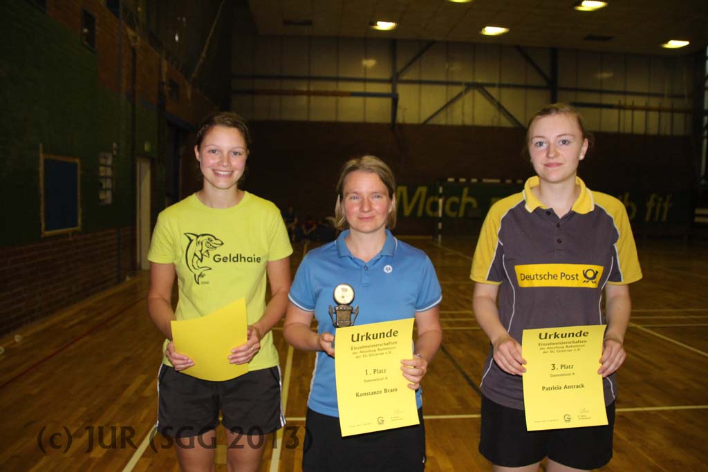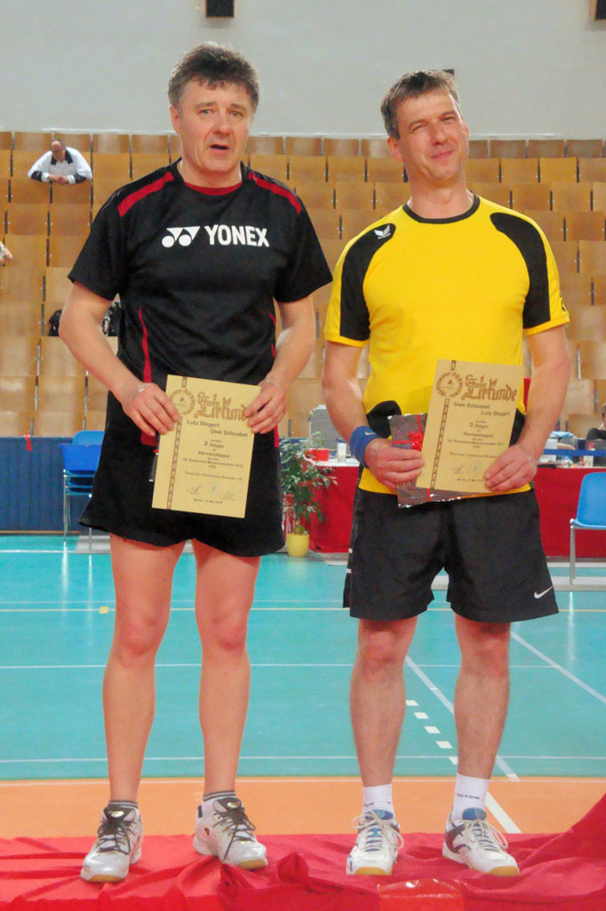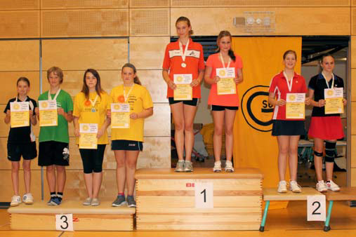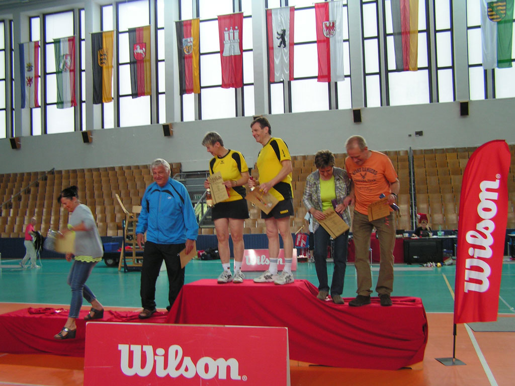 Die einzigen "Treppchenplätze" erkämpften Tom Wendt mit Platz 2 im Herrendoppel (mit Ronny Dubb - DHfK Leipzig) und Anna Bram mit dem Erreichen des Halbfinales im Dameneinzel. Hier musste Anna gegen Anja Hübner (TSV Dresden) im Entscheidungssatz (nach 23:25 und 22:20!) bei einer 4.2-Führung verletzungsbedingt aufgeben (Kniescheibe herausgesprungen!) und wird sicherlich einige Wochen "pausieren" müssen.