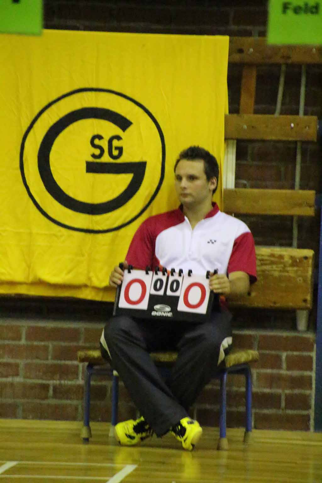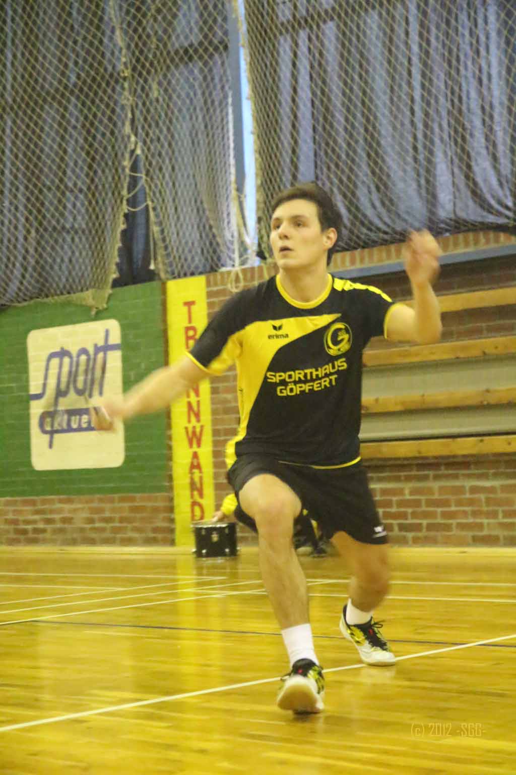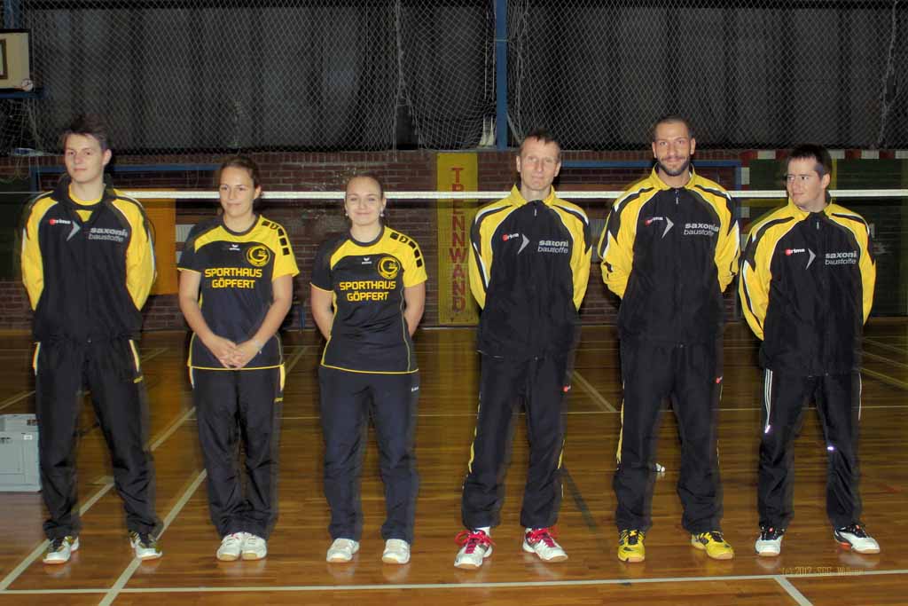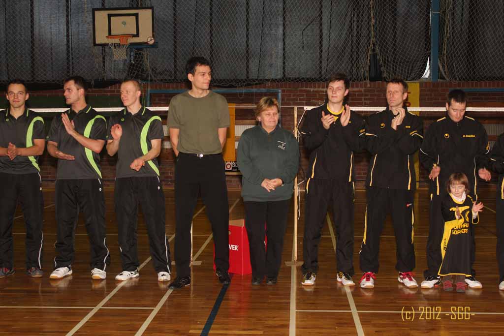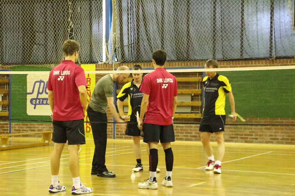 Pünktlich halb 2 waren dann auch die Gegner – die 1. Mannschaft des DHfK Leipzig - versammelt. Nach einer ausschweifenden Begrüßung, bei der diesmal nicht nur Namen sondern auch Alter und Beruf der Spieler angesagt wurden, startete die Partie mit dem 1. Herrendoppel und dem Damendoppel.