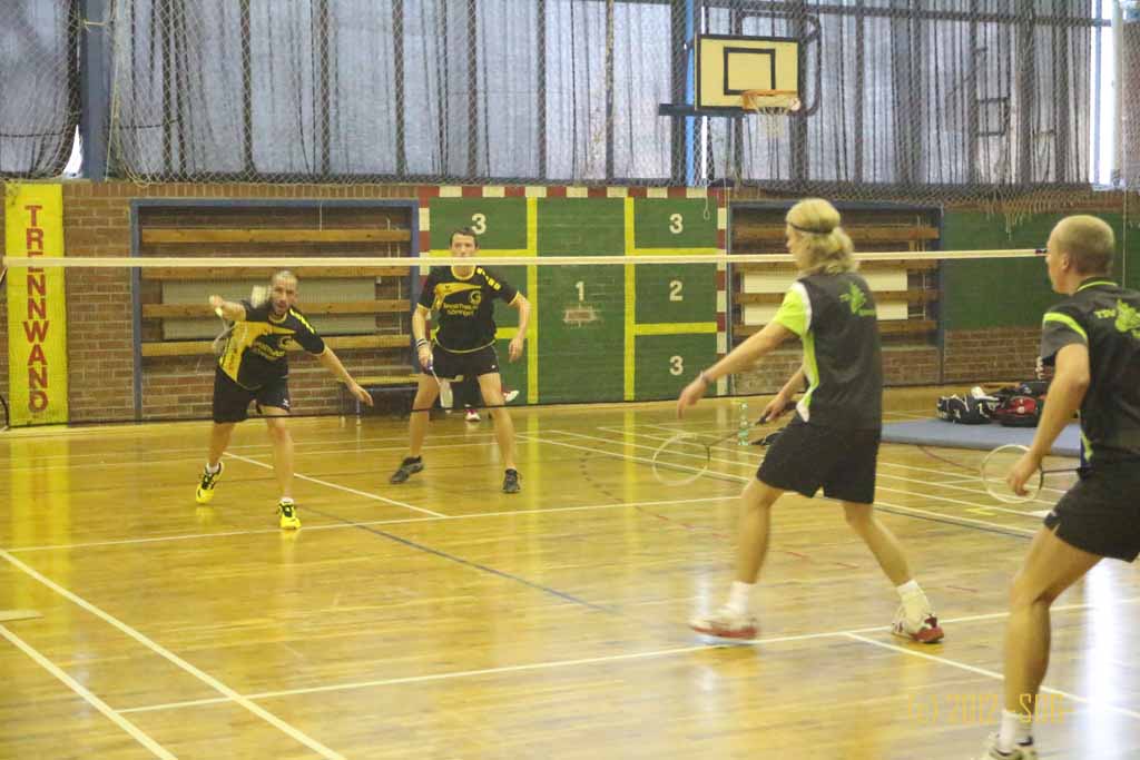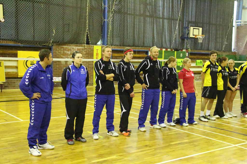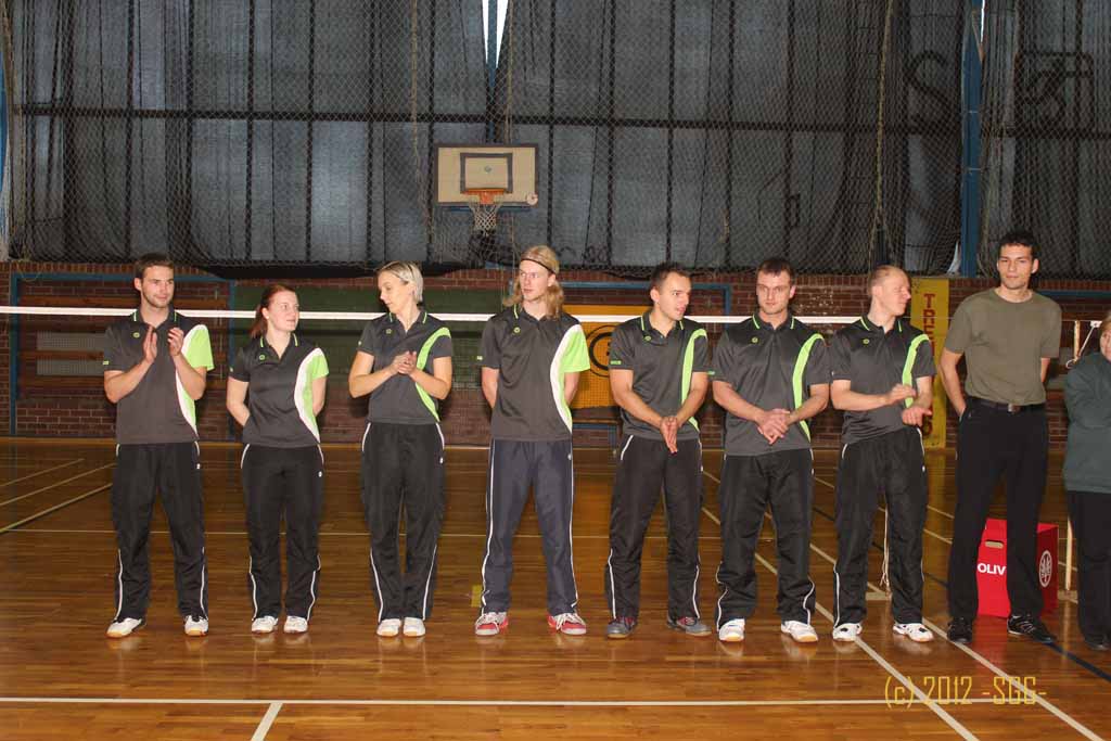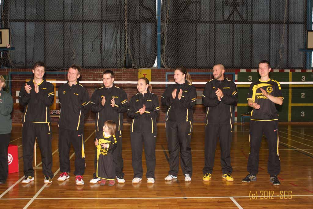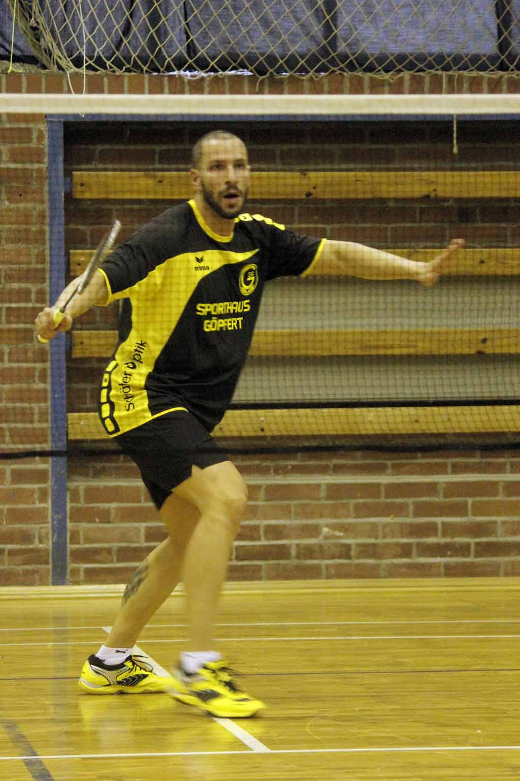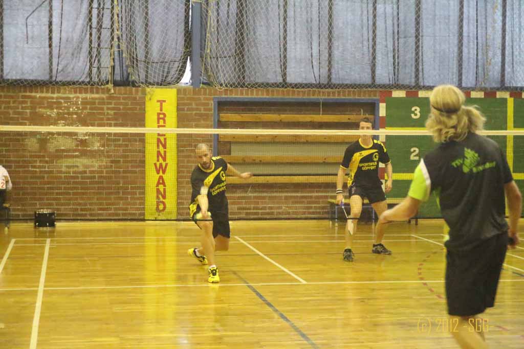 Pünktlich halb 2 waren dann auch die Gegner – die 1. Mannschaft des DHfK Leipzig - versammelt. Nach einer ausschweifenden Begrüßung, bei der diesmal nicht nur Namen sondern auch Alter und Beruf der Spieler angesagt wurden, startete die Partie mit dem 1. Herrendoppel und dem Damendoppel.