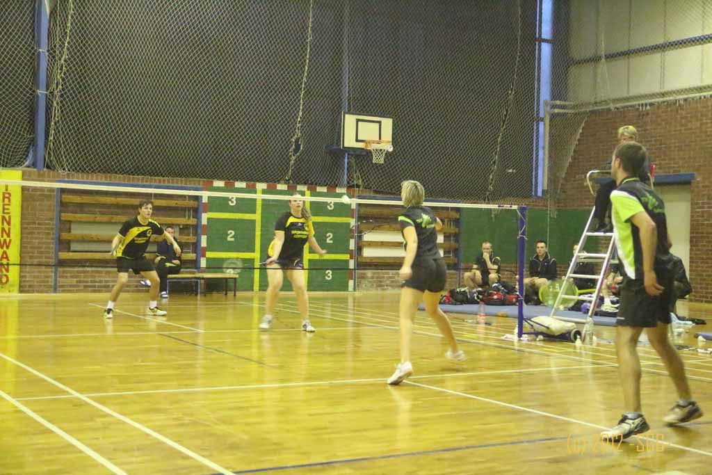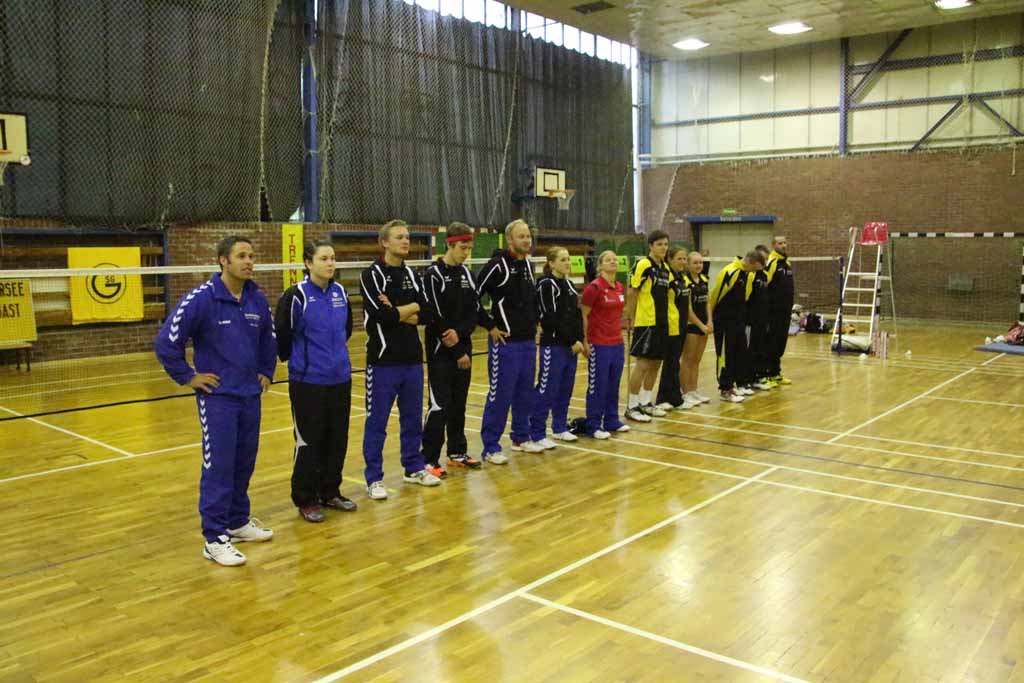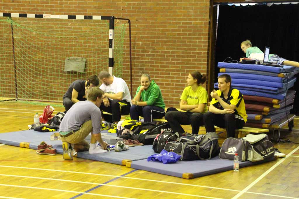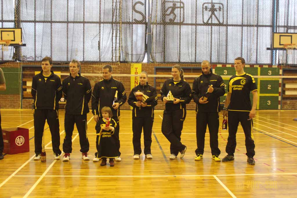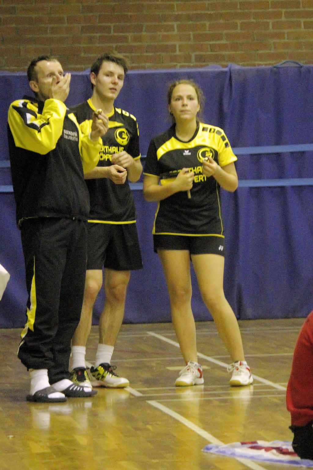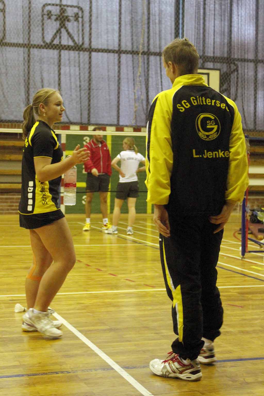 Pünktlich halb 2 waren dann auch die Gegner – die 1. Mannschaft des DHfK Leipzig - versammelt. Nach einer ausschweifenden Begrüßung, bei der diesmal nicht nur Namen sondern auch Alter und Beruf der Spieler angesagt wurden, startete die Partie mit dem 1. Herrendoppel und dem Damendoppel.