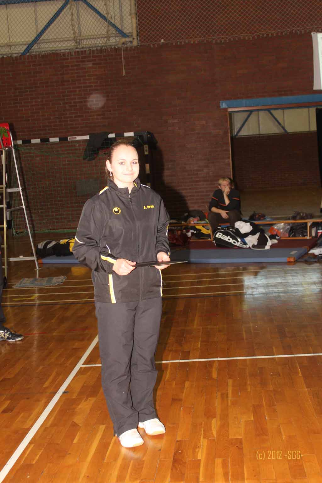 Ihren bisher größten Erfolg im Badminton erreichte Anna Bram mit dem Titelgewinn im Dameneinzel: nach dem 3-Satz-Erfolg gegen ihre Doppelpartnerin Karolin Koinzer (Marienberg) gewann sie im Halbfinale erstmals (!) gegen ihre Übungsleiterin und Trainingskameradin, Titelverteidigerin und Meisterin der letzten fünf Jahre Nicole Bartsch (21:12, 12:21, 21:17) und im Finale gegen die an 2 gesetzte Leipzigerin Lisa Baumgärtner (21:12, 21:14)!! Im Damendoppel scheiterte sie mit ihrer Partnerin bereits im ersten Spiel gegen die „erfahreneren“ Zittauerinnen Kathrin Tröger und Marika Werner und im Mixed mit Erik Bachmann (Röhrsdorf) nach Auftakterfolg gegen Fritzsche/Petzold (Röhrsdorf) an den späteren Finalisten Kamann/Kamann (Taucha).