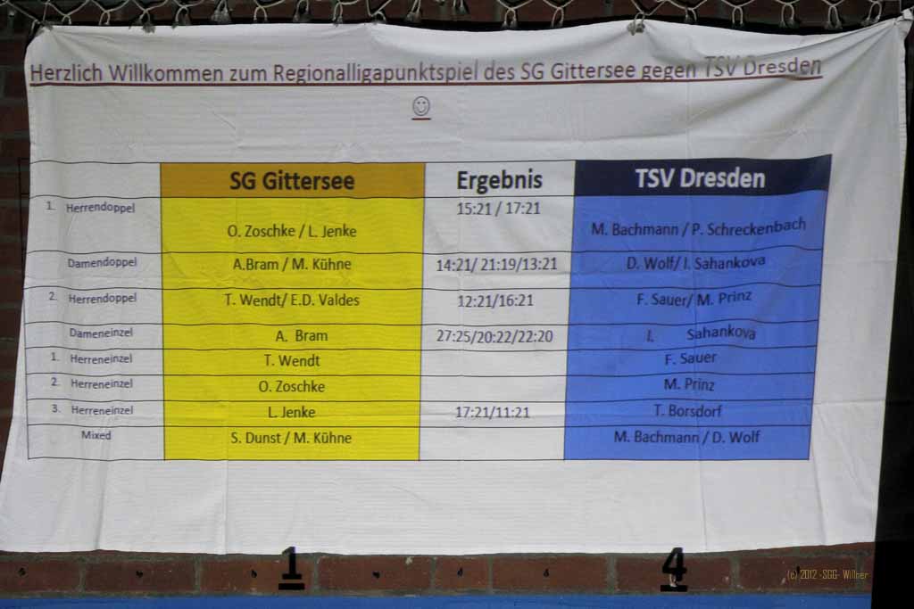 SG Gittersee 1. - TSV Dresden 1.: 2:6
