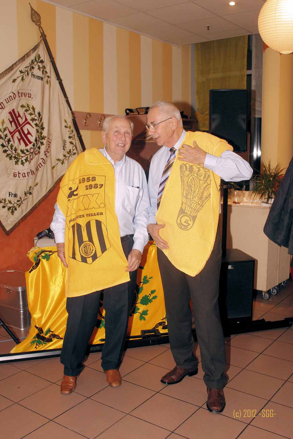 Bemerkenswert, dass alle (!) 20 unserer Abteilung seit über 30 Jahren ununterbrochen angehörenden Mitglieder (darunter 9 „50-Jährige“!) anwesend waren, auch unser erster Kreis- und Bezirksmeister (im Jahre 1959!) „Murmel“ Christmann mit Ehefrau erschienen war und der „Deutsche Jugendmeister“ und „Deutsche Mannschaftsmeister“ von 1967 Jürgen Schulz die mehr als 600 km lange Anreise auf sich genommen hatte, um wieder einmal mit seinen ehemaligen Mannschafts- bzw. Gemeinschaftskameraden Erinnerungen auszutauschen.