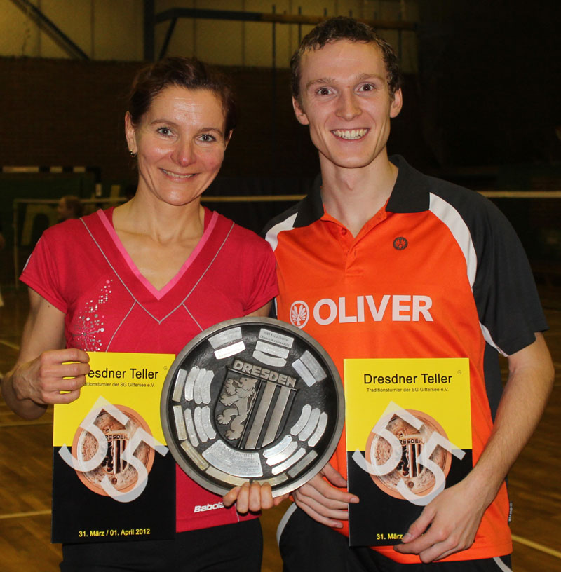 Die zum Jubiläum gestifteten "Goldenen Dresdner Teller" gehen bei den Damen an Nicole Bartsch und bei den Herren an Stefan Adam (beide SG Robur Zittau).