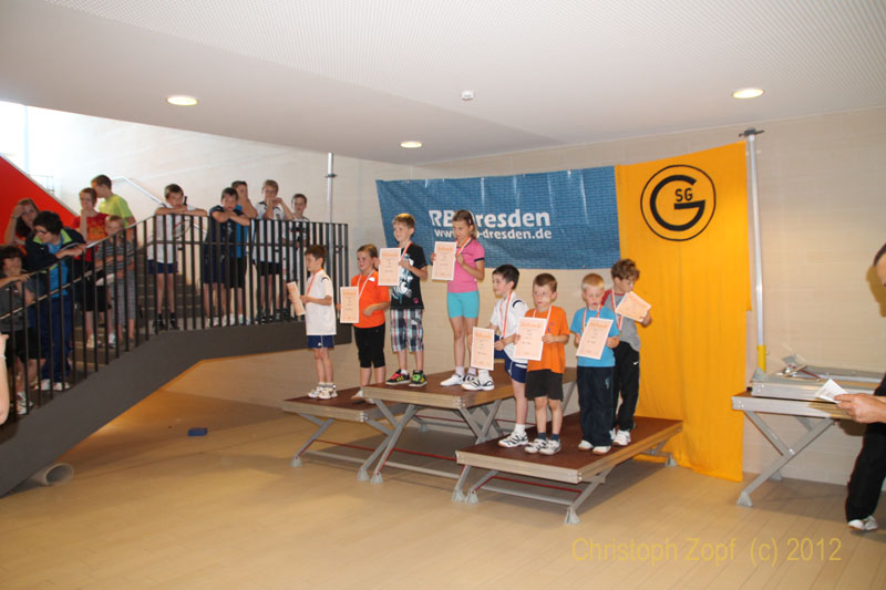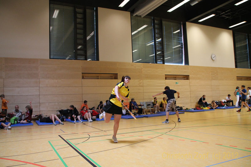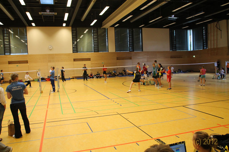10 Kinder und Jugendliche reisten am letzten Tag der Osterferien (15.04.2012) nach Freiberg. Unter ihnen mit Aline Stefan, Annabella Jäger, Philip Brochlitz und Ludwig Bram vier u15ner, die die Chance nutzten Spielpraxis bei den „Großen“ zu sammeln und dass sie nicht nur Kanonenfutter sein würden, zeigte der spätere Spielverlauf. Aber auch die anderen teilnehmenden Spieler/innen Bianca Büttner, Elisabeth Seide, Lukas Bram, Tobias Pfitzner, Robert Sittner und Pascal Kluge sind alle erstes bzw. zweites Jahr u17, so dass wir mit Abstand das jüngste Team in der Halle waren.