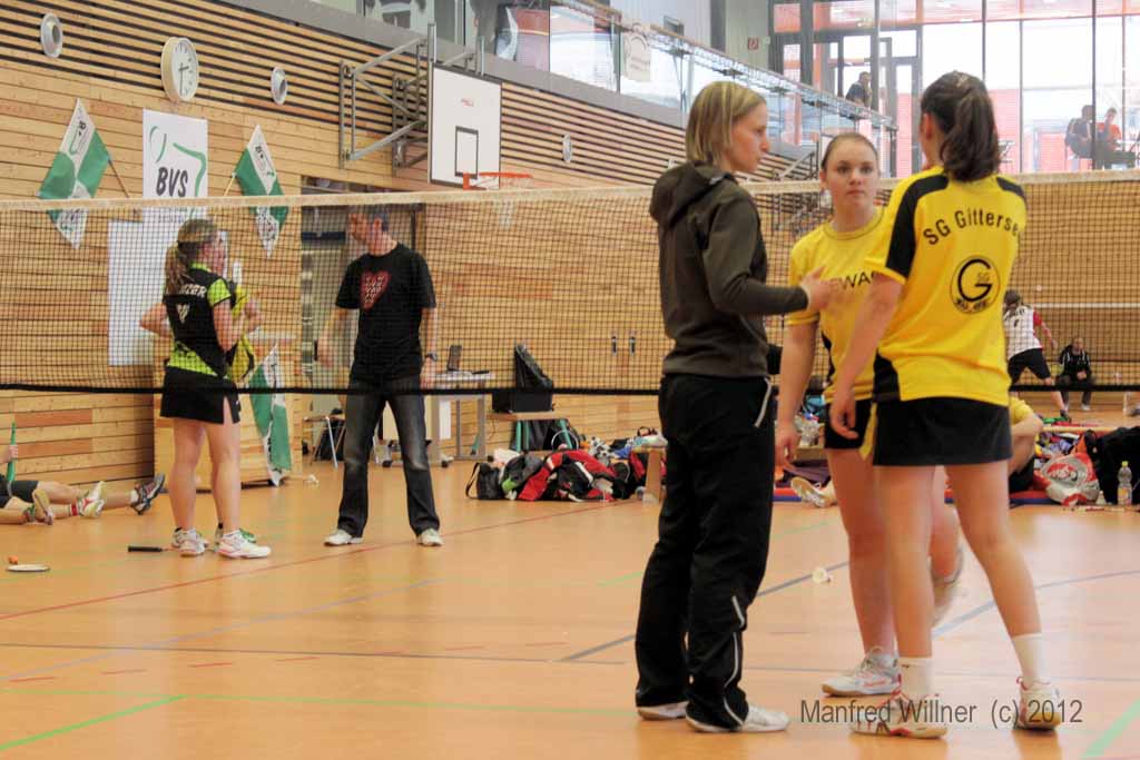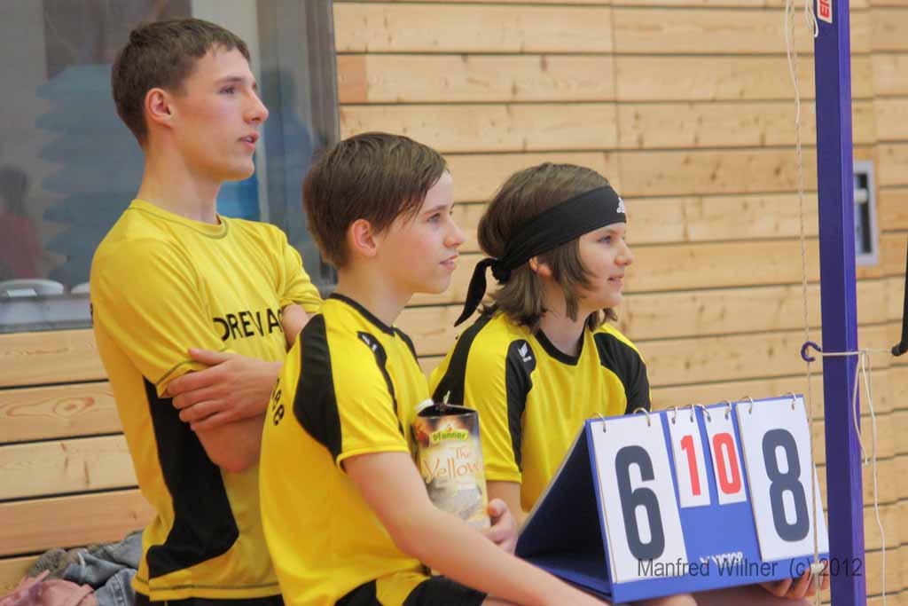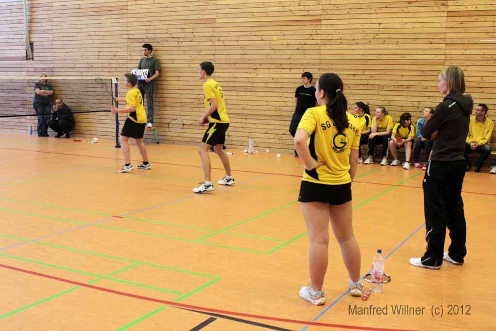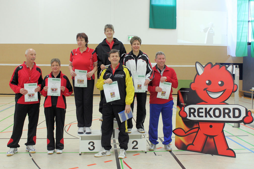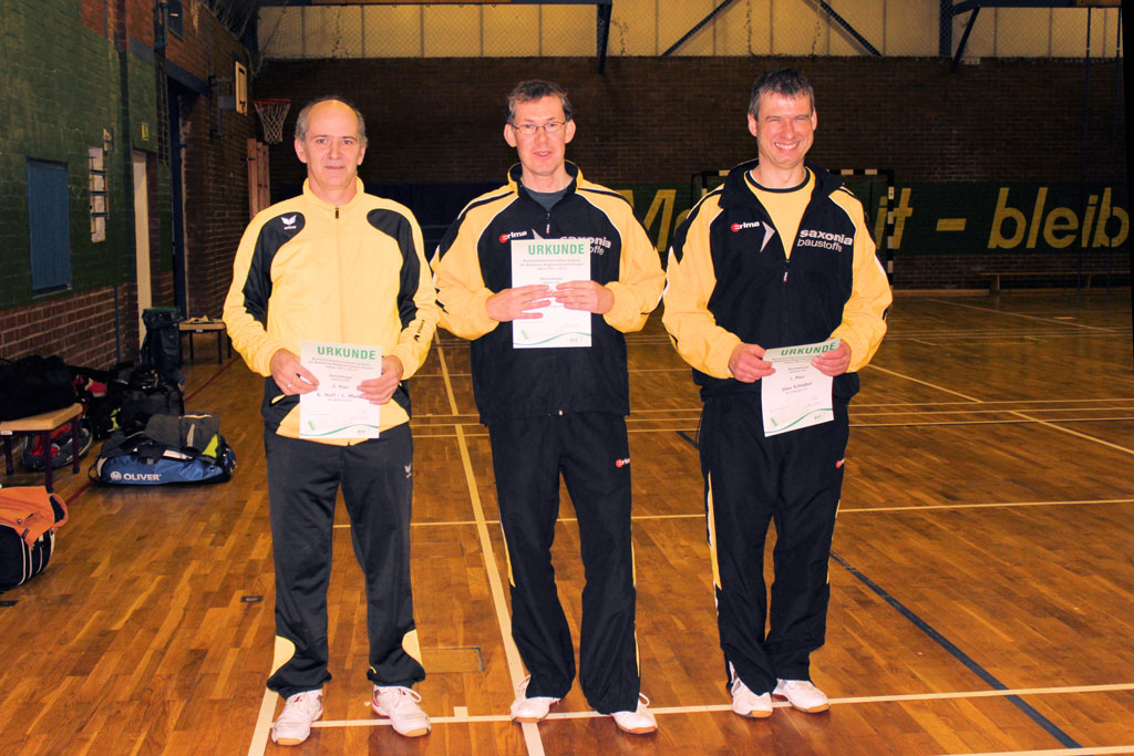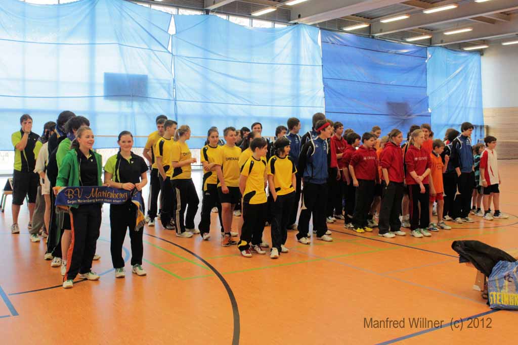 Nach dem 7:1-Auftakterfolg gegen BV Zwenkau 64 und dem 6:2-Sieg gegen die SG Robur Zittau kam es gegen den mit den gleichen Ergebnissen erfolgreichen BV Marienberg zu einem "echten" Endspiel. Die mit vier D-Kadern antretenden und im Schnitt auch ein Jahr älteren Marienberger wurden ihrer Favoritenrolle gerecht und konnten sich gegen unsere gut eingestellten und aufopferungsvoll kämpfenden Spieler behaupten. Wir gewannen das Mädcheneinzel und das Mixed und verloren jeweils erst im Entscheidungssatz das Mädchendoppel mit 20:22 und das 2. Jungendoppel mit 22:24!! –Als Vizemeister haben wir uns damit für die am 31.03. und 01.04.2012 in Königsbronn stattfindenden Südostdeutschen Mannschaftsmeisterschaften qualifiziert.