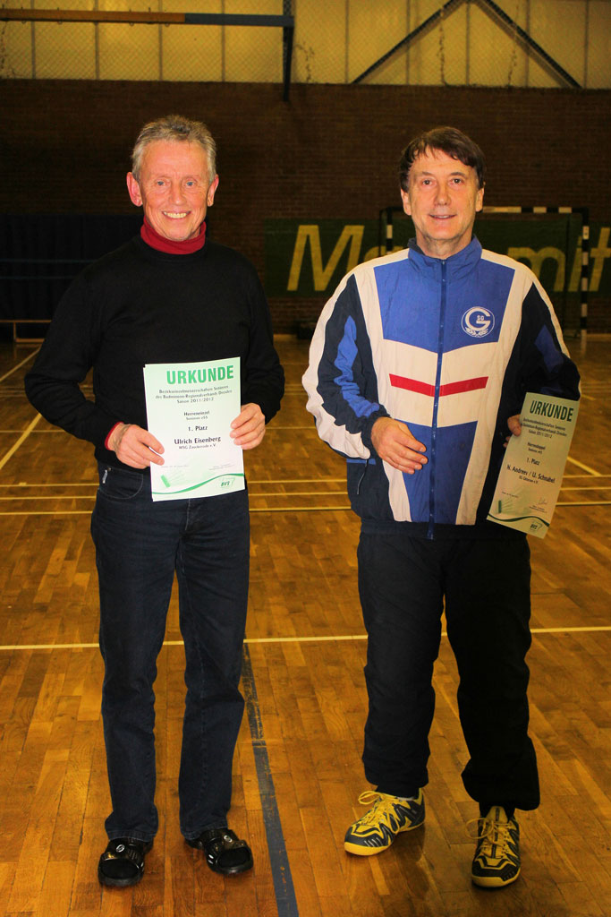 Uwe Schnabel belegt im Mixed -B- mit seiner Partnerin Sigrid Weckschmied (Radebeuler BV) den ersten Platz beim traditionellen "Neujahrs-Doppelturnier" der TSV Dresden am 07.01.2012.